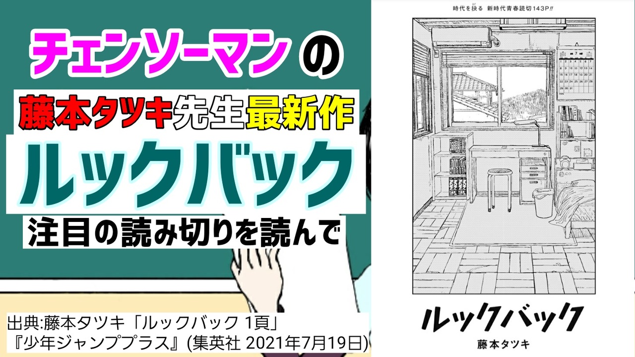 Source: www.pansizai.jp 『ルックバック』がヤバいので読んでほしい こんにちは(o・ω・o)カエルです。 7/19 0:00に投稿された、コチラのツイート ジャンプ漫画『チェンソーマン』の藤本タツキ先生の長編読み切り(143p)が期間限定で無料公開されています。